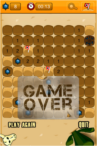 The thing is, Minesweeper is all about precision. On the PC, you can easily click or perform a hold click; these actions serve to determine whether the particular tile is a bomb or otherwise. On a resistive touchscreen, pin-point accuracy is supplied by the stylus. Things get really tricky on the iPhone as fingers are involved. You may end up accidentally tapping on the wrong tile or the game mistakenly recognises a hold as just a tap. Boom. Game Over. Is it too much to ask for bigger tiles in response to this?
