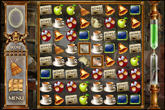 Gameplay takes place on a board ala Bejeweled. Pieces of a particular antique are scattered on the board, and players are supposed to try and move them to the bottom row of the board by matching away the other pieces on the board. Problems creep up when there are no pieces to match around the antique parts, or the antique parts are too closed together, leaving no room to maneuver.