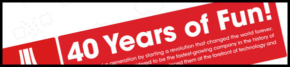 The venerable gaming company Atari actually turned 40 yesterday! Bring out the champagne all you Atari heads out there, it’s seldom for a western games company to last so long but Atari has done it. To commemorate this super special occasion, they’ve come up with an interesting infographic. Check it out: