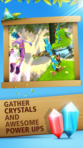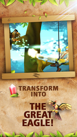 To increase the challenge, gamers transform Ciellu to the Mystic Eagle, to fly through the air above Skyland. Transform by collecting the magical feathers and explore the thrilling flight mode. Challenge arises in the flight mode with a new control method. To improve the odds of survival, players can use their collected crystals in the game shop to buy special powers such as immunity, an amulet of strength or fairies and hearts that will provide an extra life.