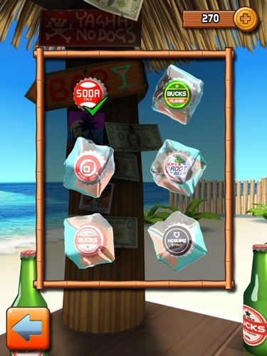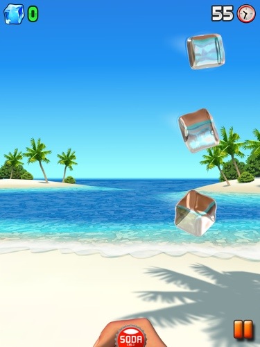 Players take on the role of a beach barman who has too much free time on his hands (what can I say….. beach life can be pretty idyllic), and the objective of the game is to flick bottle caps to break as many number of ice cubes in under a minute. You only need one hand to play the game.