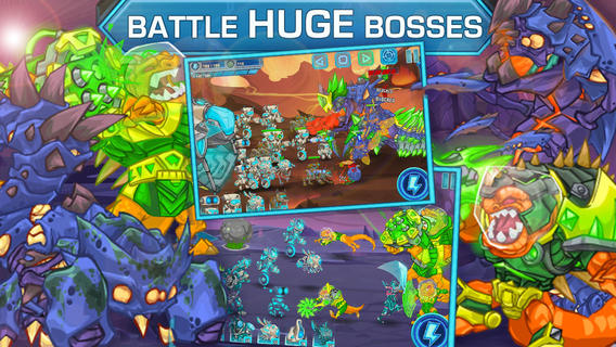 There’s the Homeworld-inspired mothership which brings your motley crew around the galaxy to mine resources in order to fight an alien threat. On board, you get to upgrade your units using ore obtained from the levels. There are other things that are obtained from playing the levels, namely energy used to trigger power-ups in the strategic-defense levels (likewise with ore, which is used in the shmup levels as well), and nova, obtained from fighting boss creatures and can be used to purchase new unit types.